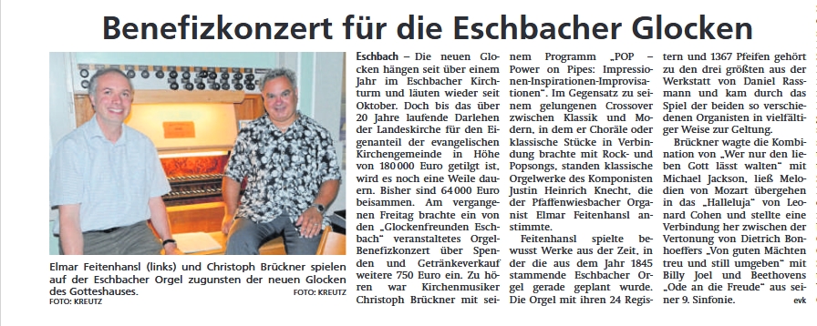 "Ein Grenzgänger" an der Orgel: Presse Bericht der Wetterauer Zeitung am 05. November 2019 (Konzert in der Friedberger Burgkirche am 03.Nov.2019) [auf Bild-Datei klicken, um sie grösser und lesbarer zu machen!] Konzert in Mücke/Gross-Eichen, 01. November 2019. Artikel aus Alsfelder Allgemeine: Konzert in Stein-Fischbach, Waldems, 16. Oktober 2019. Artikel aus Wiesbadener Kurier: