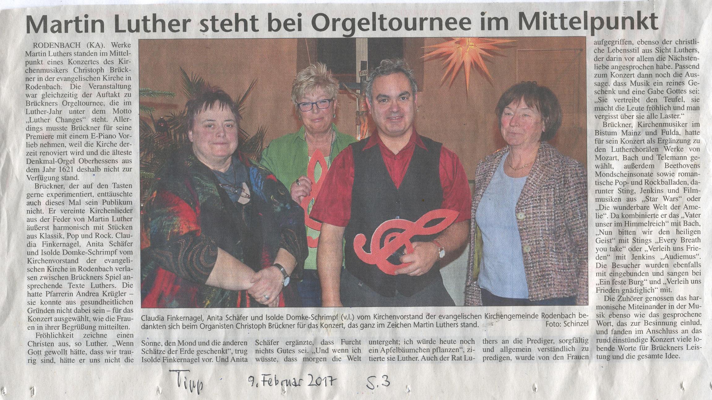 bald 500 Jahre alten Lieder Martin Luthers wird Christoph Brückner in